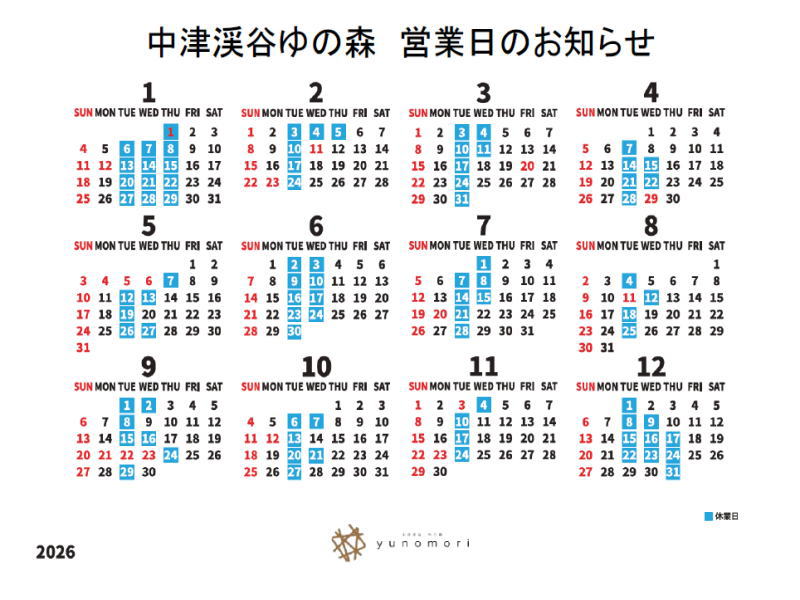 | 月 | 温泉スタンプカード2倍デー |